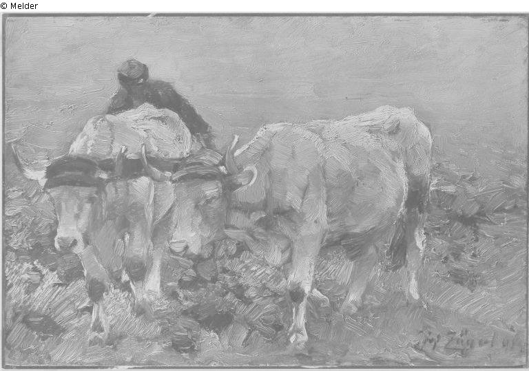 Bauer mit zwei Ochsen