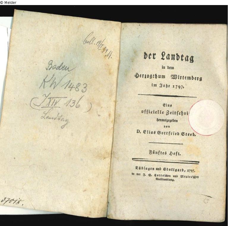 Eine offizielle Zeitschrift herausgegeben von Dr. Elias Gottfried Steeb. Zur Aufbringung der Kriegsentschädigung und Kriegskosten wurden die Stände einberufen, die im „Reformlandtag" (1797-1799) zunächst die entartete Ausschussoligarchie stürzten. Über