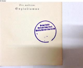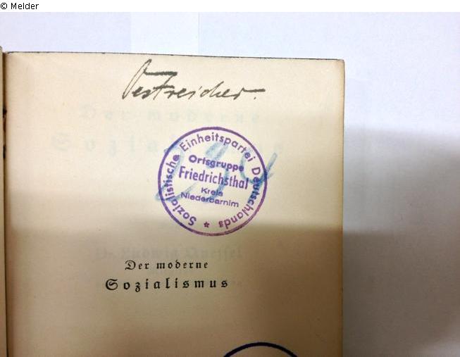 Auf dem Schmutztitel: "Oestreicher" [Signatur, Tinte braun], "Gemeinde Friedrichsthal, Kreis Niederbarnim" [Stempel], "Sozialistische Einheitspartei Deutschlands, Ortsgruppe Friedrichsthal, Kreis Niederbarnim" [Stempel], 234 [Signatur, blau, über SED-Stempel]; auf Umschlagtitel: A II d 3/30 [Signatur, Bleistift], P 66 [Signatur, Tinte schwarz, Aufkleber]