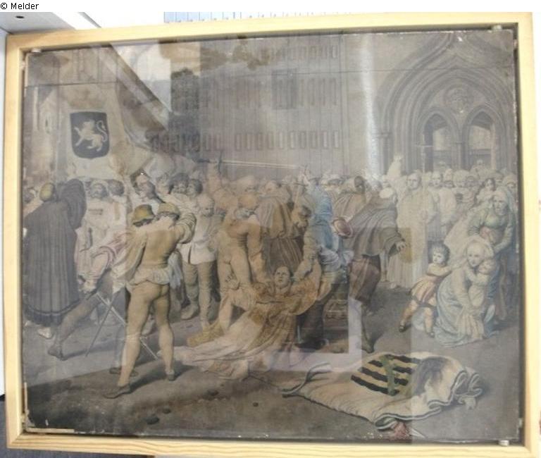 Die Ermordung des Probstes Nicolaus von Bernau vor der Tür der Marienkirche in Berlin am 16. August 1325.