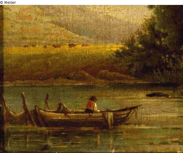 Landschaft mit Fischer im Sommer (landscape, fisherman, summer); auf dem Keilrahmen die Bezeichnung (on stretcher marking): "7272"; auf dem Rahmen die Bezeichnung (on frame marking): "7513"