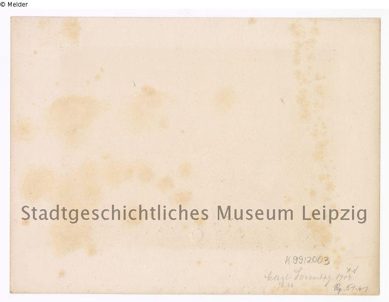 um 1856 – o.D., Louis Oeser (* Breslau, 13.09.1816 – 14.05.1885, Dresden), Neusalza; […]; vermutlich 1904 – 20.08.1930, Carl Sonntag (* Leipzig, 21.07.1883 – 20.08.1930, Berlin), Leipzig/Berlin; 20.08.1930 – 10.04.1941, Laura Sonntag (geb. Kern, *Chicago 22.10.1893 – 11/1979, New York), Ehefrau von Carl Sonntag, erworben im Erbgang von ihrem Ehemann, Leipzig/New York; frühestens ab 10.04.1941 – 18.08.1941, Deutsches Reich und Versteigerungshaus Hans Klemm, Leipzig; seit 19.08.1941, Stadtgeschichtliches Museum Leipzig, erworben im Rahmen der Auktion des Versteigerungshauses Hans Klemm