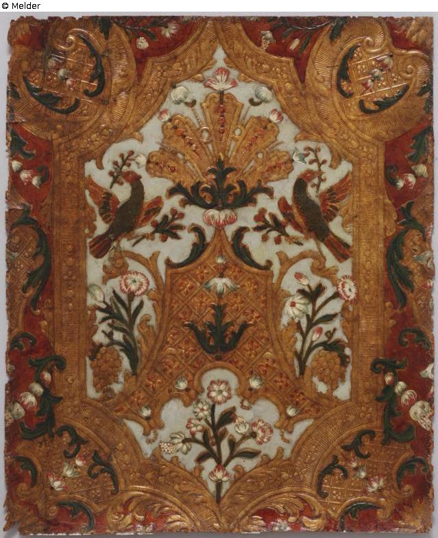 Goldledertapete nach einem Textilentwurf von Daniel Marot (sog. Vogeltapete)