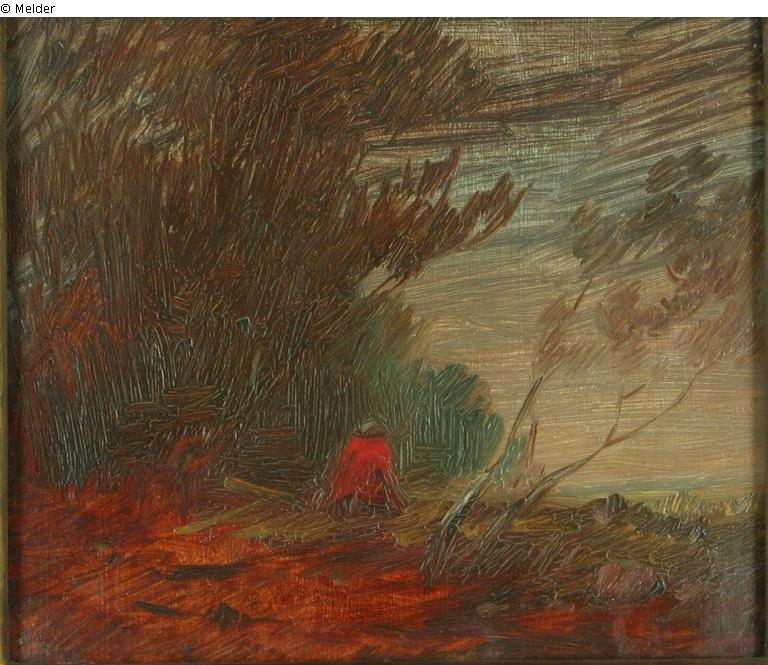 Herbstlicher Waldrand mit sitzender Rotjacke
