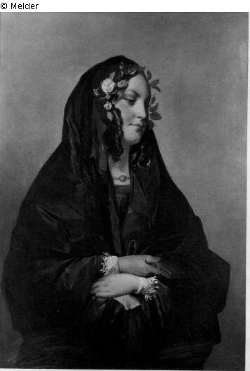 Junge Frau mit Kopftuch und Rosen im Haar