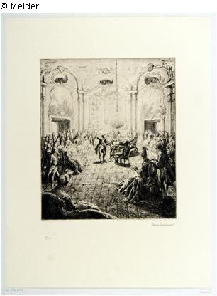 Fundmeldung | Einzelobjekt Kammermusik im Festsaal eines Schlosses Lost Art-ID429486 Vorherige Weiter Hersteller/Künstler:in Schultheiß, Karl Max Geburt 1885.08.04, Nürnberg Tod 1944.01.23 / 1961.11.09, New York / Kew Gardens (New York) / München WirkungsortNürnberg; München TitelKammermusik im Festsaal eines SchlossesObjektartDruckgrafikObjektgruppeGrafikMaterial / TechnikPapier / gedruckt (Radierung) Höhe 24,70 cm Breite 20,70 cm InventarnummerA 1936-155Provenienz laut Inventarbuch des Kupferstich-Kabinetts Dresden: Überwiesen vom Ministerium des Innern Weiterlesen Weniger anzeigen Veröffentlicht seit15.02.2011 Kontakt Staatliche Kunstsammlungen Dresden Kupferstich-Kabinett Taschenberg 2 01067 Dresden Deutschland Tel(0351) 4914 3210E-Mailkk@skd.museumHomepagehttps://www.skd.museum Ansprechpartner:in DirektionTel(0351) 4914 3210E-Mailkk@skd.museum