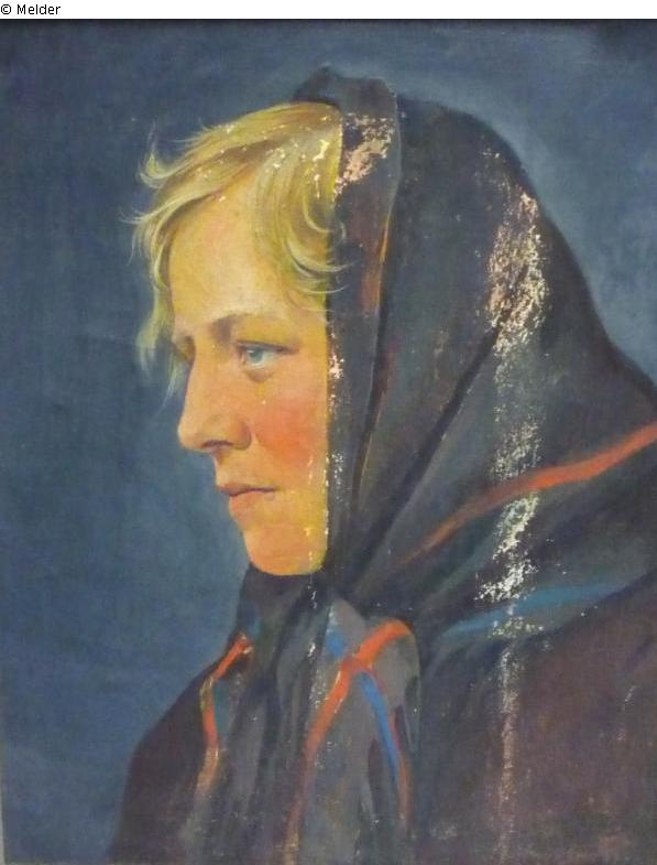 sign. u. r. „Georg Jost“; verso: Keilrahmen l. Schenkel Aufkleber "Georg J o s t [Berlin] Wilmersdorf Rüdesheimer Platz / Junge Bäuerin aus der Rhöne"