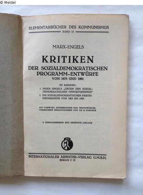 Kritiken der sozialdemokratischen Programm-Entwürfe von 1875 und 1891. (3. durchgesehene und ergänzte Auflage). Reihe: Elementarbücher des Kommunismus, Bd. 12