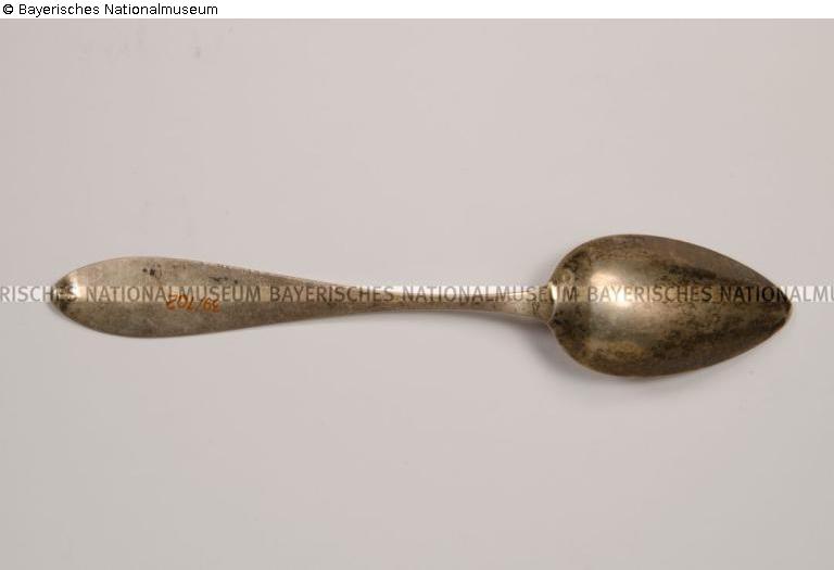 Provenienzforschung: 1939 von Erich Eugen Rosenberg (1881 Hannover - 1957 München) und seiner Ehefrau Hermine Rosenberg, geb. Hess (1886 München - 1967 München), als Zwangsablieferung von Edelmetall (Silber) gemäß der "Dritten Anordnung auf Grund der Verordnung über die Anmeldung des Vermögens von Juden" vom 21.02.1939 - zusammen mit BNM Inv.-Nrn. 39/103-105 - an das Städtische Leihamt München: A[nkaufs]V[erzeichnis] 1062. 1939 Ankauf durch das Bayerische Nationalmuseum vom Städtischen Leihamt München (Silberverwertungsstelle: AV 1062) für RM 4,00.- (Silber: keine Gewichtsangabe). Vorprovenienz unbekannt./A.G., 2018