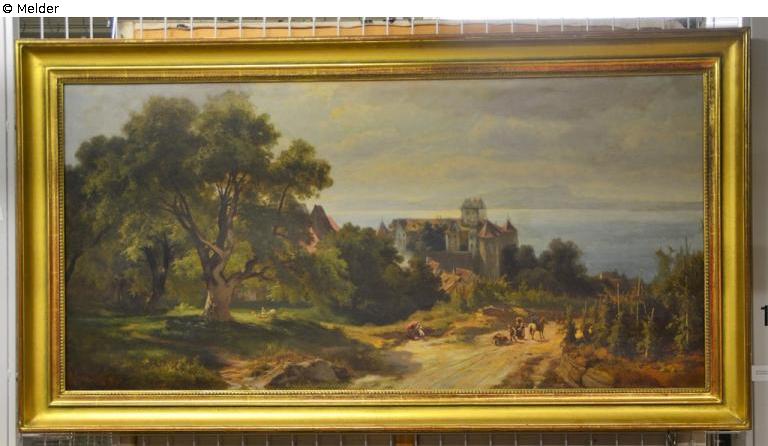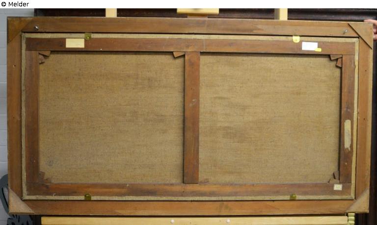 Provenienzmerkmale: Rückseite, Keilrahmen: Zollstempel in blau „ZOLL / II-29 / +“; alte Klebeetiketten des Städtischen Bodenseemuseums mit den hist. Inventarnummern „Mu 869/54“ und „e) 11“; ein abgerissenes größeres, verbräuntes Etikett; Rückseite, Leinwand: Zollstempel in blau „ZOLL / II-29 / +“