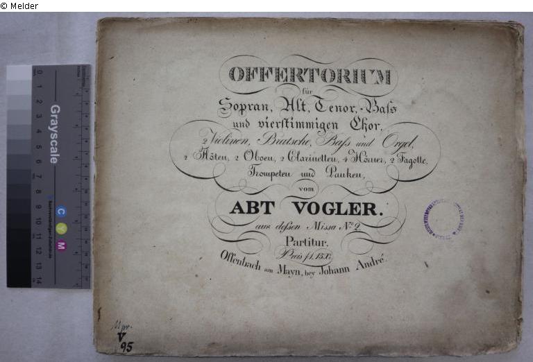 Rundstempel: "Musikwissenschaftliches Institut der Universität Köln"; Stempel: "Musikwissenschaftliches Institut der Universität Köln"; handschriftliche Inventarnummer: "11,1105";