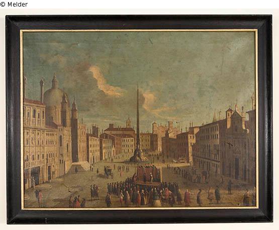 Commedia-Bühne auf der piazza navona in Rom Ölgemälde ca. 1780 [daneben Aufkleber mit handschriftlich in Kugelschreiber:] 15/67