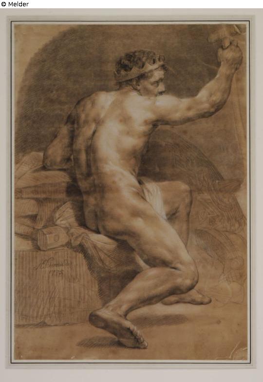 Sitzender männlicher Rückenakt; Vulcan
