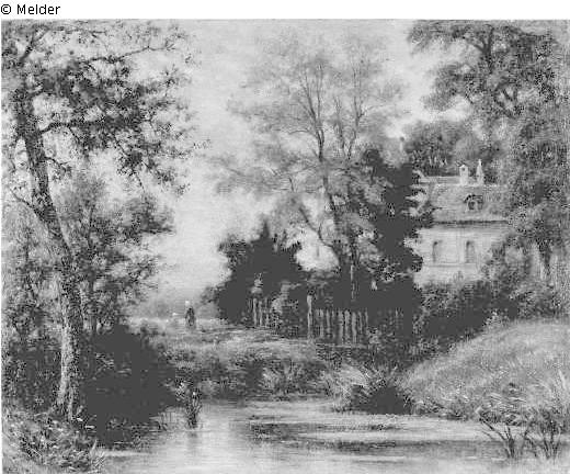 Waldlandschaft mit Gebäude