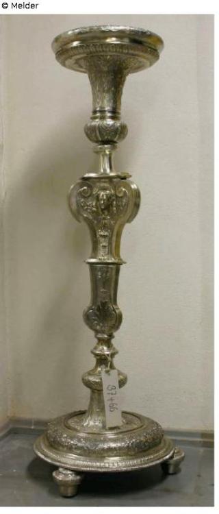 Suchmeldung Ein Silbergueridon Hersteller/Künstler:in Biller, Johann Ludwig (1656) (möglicherweise) Objektart Möbel Material / TechnikMetall (Silber) ; Metall (Eisen) ; Holz / getrieben...Lost Art-ID628633