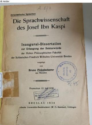 Fundmeldung Die Sprachwissenschaft des Josef ibn Kaspi Autor:in Finkelscherer, B. Verlag Dieterich Objektart Buch Lost Art-ID632696