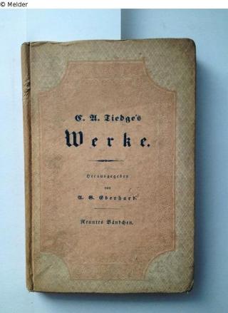 Fundmeldung C. A. Tiedges Werke (Band 9) Herausgeber Eberhard, A. G. Verlag Ringersche Verlagsbuchhandlung Objektart Buch Lost Art-ID529970
