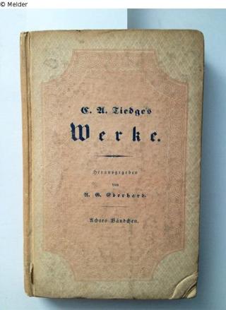 Fundmeldung C. A. Tiedges Werke (Band 8) Herausgeber Eberhard, A. G. Verlag Ringersche Verlagsbuchhandlung Objektart Buch Lost Art-ID529971