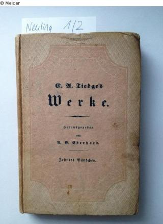 Fundmeldung C. A. Tiedges Werke Band 2 Autor:in Eberhard, A. G. Verlag Renger Objektart Bibliotheksgut Lost Art-ID531832