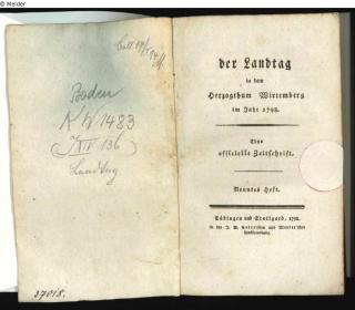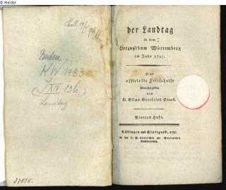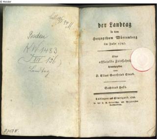 Eine offizielle Zeitschrift herausgegeben von Dr. Elias Gottfried Steeb. Zur Aufbringung der Kriegsentschädigung und Kriegskosten wurden die Stände einberufen, die im „Reformlandtag" (1797-1799) zunächst die entartete Ausschussoligarchie stürzten. Über