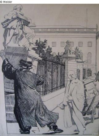 Fundmeldung "Satire auf die Bilderstürmer an der Berliner Universität" Hersteller/Künstler:in Gehrke, Fritz Objektart Zeichnung Material / TechnikBleistift ; Karton / gezeichnet ; gezeichnet (Feder)Lost Art-ID475433