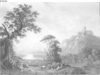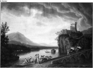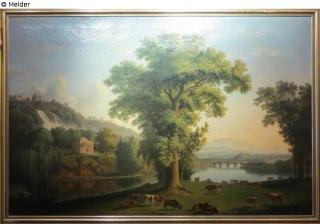 Fundmeldung Castell am See mit Brücke und Staffage Hersteller/Künstler:in Hackert, Jakob Philipp Objektart Malerei Material / TechnikÖl ; Leinwand / gemaltLost Art-ID219258