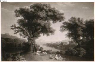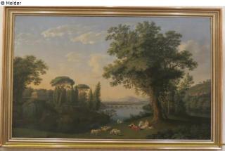 Fundmeldung Ideale Landschaft (Landschaft mit Brücke; drei junge Frauen unter Baum und Schafe) Hersteller/Künstler:in Hackert, Jakob Philipp Objektart Gemälde Material / TechnikÖl ; Leinwand / gemaltLost Art-ID567797