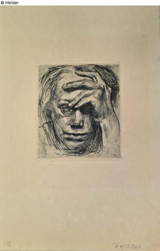 Fundmeldung Selbstbildnis mit der Hand an der Stirn Hersteller/Künstler:in Kollwitz, Käthe Objektart Druckgrafik Material / TechnikPapier / gedruckt (Radierung)Lost Art-ID626516