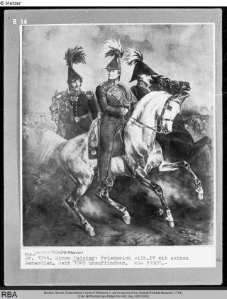 Suchmeldung Reiterbildnis Friedrich Wilhelms IV. als Kronprinz mit zwei Generälen Hersteller/Künstler:in Meister, Simon Objektart Malerei Material / TechnikLeinwand / gemaltLost Art-ID585359