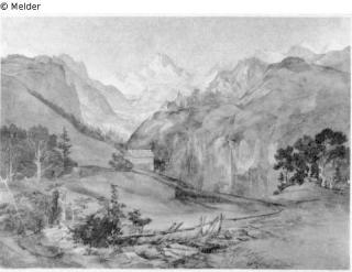 restituiert Suchmeldung Morgen im Lauterbrunner Tal Hersteller/Künstler:in Oehme, Ernst Ferdinand Objektart Zeichnung Material / TechnikWasserfarbeLost Art-ID181357