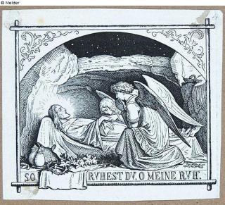 Fundmeldung So ruhst du, oh mein Ruh Hersteller/Künstler:in Richter, Ludwig (1803) Objektart Druckgrafik Material / TechnikPapier / gedruckt (Holzschnitt) ; gedruckt (Probedruck)Lost Art-ID579204