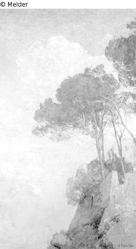 Fundmeldung Mauer am Hang mit Pinien Hersteller/Künstler:in Schönleber, Gustav Objektart Malerei Material / TechnikÖl ; Leinwand / gemaltLost Art-ID218945