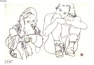 Suchmeldung Zwei sitzende Nackte mit angezogenen Knien Hersteller/Künstler:in Schiele, Egon Objektart Zeichnung Material / TechnikKreide / gezeichnetLost Art-ID484038