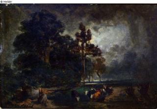 Fundmeldung Dachauer Moos mit abziehendem Gewitter Hersteller/Künstler:in Schleich, Eduard (der Ältere) Objektart Gemälde Material / TechnikÖl ; Holz / gemaltLost Art-ID565786