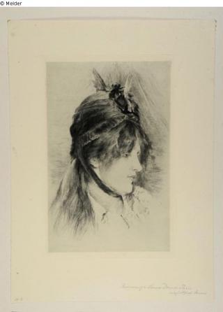 Fundmeldung Bildnis einer Dame im Profil nach rechts (Kopf einer Pariserin) Hersteller/Künstler:in Danse, Louise Hersteller/Künstler:in Stevens, Alfred (nach) Objektart Druckgrafik Material / TechnikKarton (Kupferdruckkarton) / gedruckt (Radierung)Lost Art-ID318975