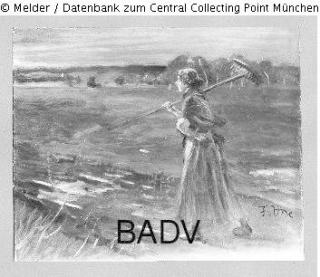 Suchmeldung Auf dem Heimweg, Bäuerin mit Rechen Hersteller/Künstler:in Uhde, Fritz von Objektart Gemälde Material / TechnikÖl ; Karton / gemaltLost Art-ID599174