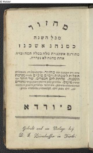 Fundmeldung Siddûr Śĕfāt ĕmet Autor:in Heidenheim, Wolf Herausgeber Zürndorfer, David Isaac Verlag Zürndorffer Objektart Buch Lost Art-ID612421