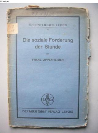 Fundmeldung Die soziale Forderung der Stunde. Gedanken und Vorschläge Autor:in Oppenheimer, Franz Verlag Der neue Geist Objektart Buch Lost Art-ID460030