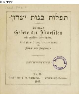 Fundmeldung Tägliche Gebete der Israeliten mit deutscher Übersetzung. Objektart Buch Lost Art-ID482153