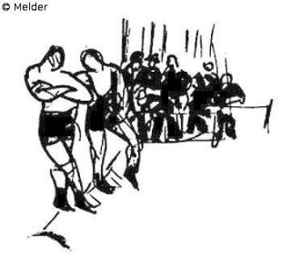 Suchmeldung Zwei Boxer mit Zuschauern hinten Hersteller/Künstler:in Pechstein, Max Objektart Zeichnung Material / TechnikBleistift ; Tusche ; Papier / gezeichnetLost Art-ID634806