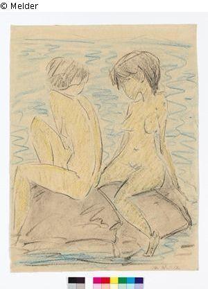 Fundmeldung Zwei auf Felsen sitzende Mädchen Hersteller/Künstler:in Müller, Otto Objektart Zeichnung Material / TechnikKreide farbig / gezeichnetLost Art-ID586570