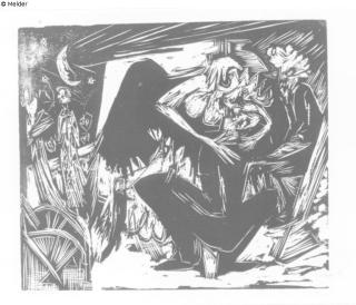 Fundmeldung Absalom und seine Ratgeber Mappe "Absalom" mit 7 Holzschnitten und einem farbigem Titelholzschnitt, Blatt 3 Hersteller/Künstler:in Kirchner, Ernst Ludwig Objektart Druckgrafik Material / Technikgedruckt (Holzschnitt)Lost Art-ID628150