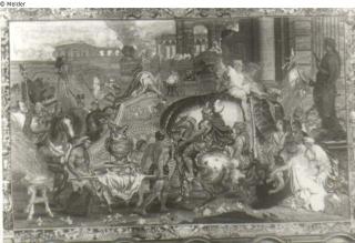 Suchmeldung Gobelin aus dem Alexanderzyklus "Der Einzug Alexanders in Babylon" Manufaktur Manufacture nationale des Gobelins Objektart Gebrauchs- / Raumtextilie Lost Art-ID233354
