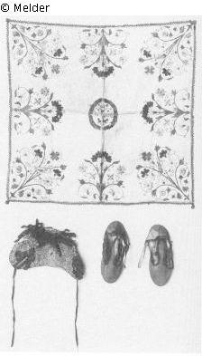 Suchmeldung Wickeltuch (Kindersachen des Kurprinzen Friedirch August (I.) von Sachsen) Hersteller/Künstler:in Unbekannt (Sächsisch (?)) Objektart Bekleidung Material / TechnikTextil (Leinen) ; Textil (Seide) ; Metall (Gold) / bestickt...Lost Art-ID194873