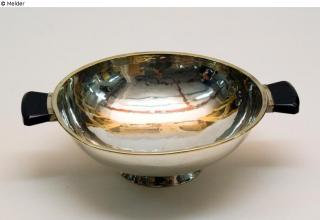 Fundmeldung Doppelhenkelschale Hersteller/Künstler:in Deutschland (möglicherweise kommen die Juweliere und Goldschmiede Wratzke & Steiger, Halle (Saale), als Hersteller in Betracht (s. Deutscher Goldschmiede-Kalender, Leipzig 1926, S. 139).) Objektart Gefäß Material / TechnikMetall (Silber) ; Kunststoff schwarz / martelliertLost Art-ID580146