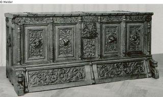 restituiert Suchmeldung Truhe Hersteller/Künstler:in Unbekannt (Norddeutsch) Objektart Möbel Material / TechnikHolz (Eiche) ; Metall (Eisen) / beschlagenLost Art-ID459358