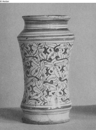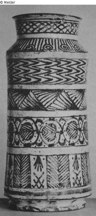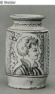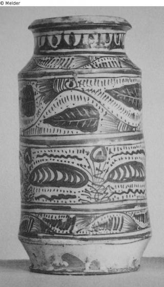 Suchmeldung Hoher Albarello Hersteller/Künstler:in Unbekannt Objektart Gefäß Material / TechnikKeramik ; Glasur (Majolika) / bemaltLost Art-ID459391