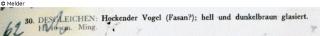 Suchmeldung Fayence-Dachreiter: Hockender Vogel (Fasan?) Hersteller/Künstler:in Unbekannt Objektart Kunsthandwerk / -gewerbe Material / TechnikKeramik (Ton) ; Glasur (Fayence) hellbraun, dunkelbraunLost Art-ID582752