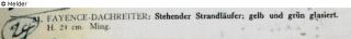 Suchmeldung Fayence-Dachreiter: Stehender Strandläufer Hersteller/Künstler:in Unbekannt Objektart Kunsthandwerk / -gewerbe Material / TechnikKeramik (Ton) ; Glasur (Fayence) gelb, grünLost Art-ID582753
