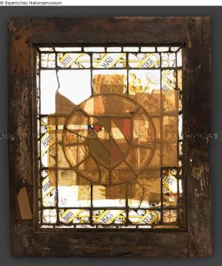 Fundmeldung Glasgemälde: Wappenscheibe, umlaufend Devise BIEN HAN TERA Objektart Kunsthandwerk / -gewerbe Material / TechnikGlas ; Schwarzlot / SchwarzlotmalereiLost Art-ID582571